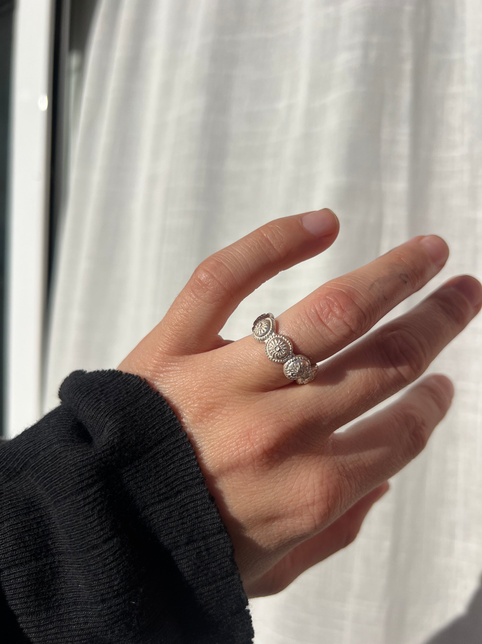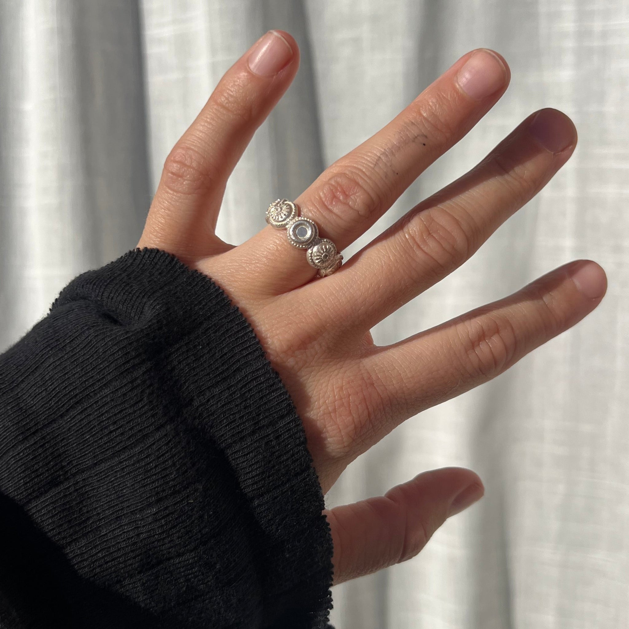 Lagersalg ring med sølvbelagt sten i str 49